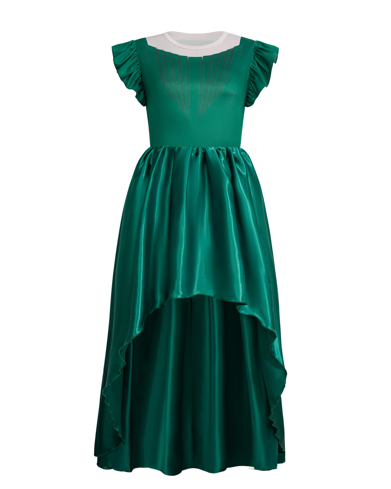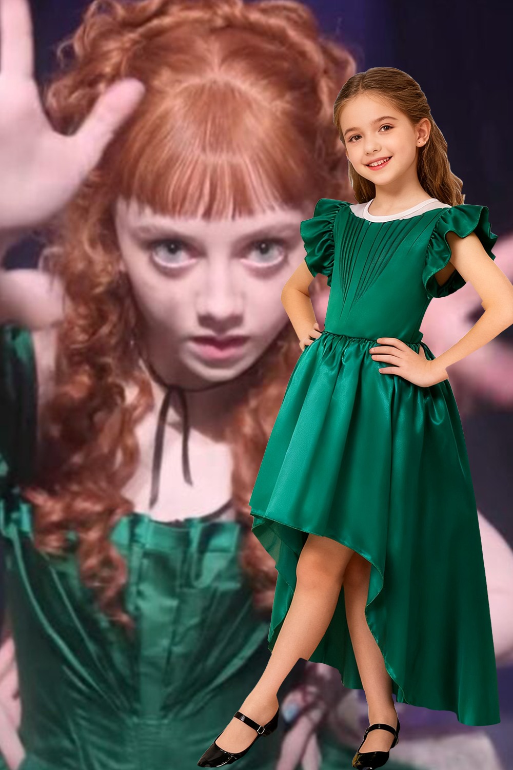 Wednesday’s style encompasses minimal tones, mainly Green in various shades, fabrics and silhouettes. Towards the end of the season we see Wednesday adorned in a maxi Green ruffled dress to prom. If you’re not a fan of all Green clothes, now is the time to divulge into it and explore a different look and if you are, you’re welcome.