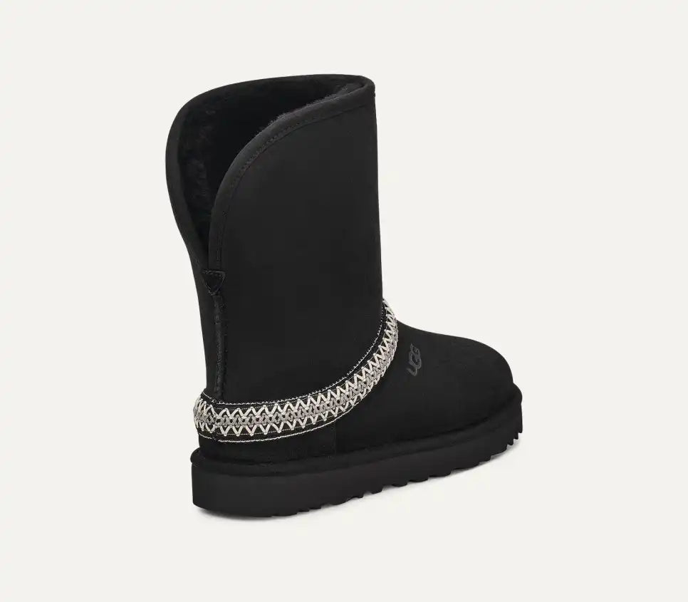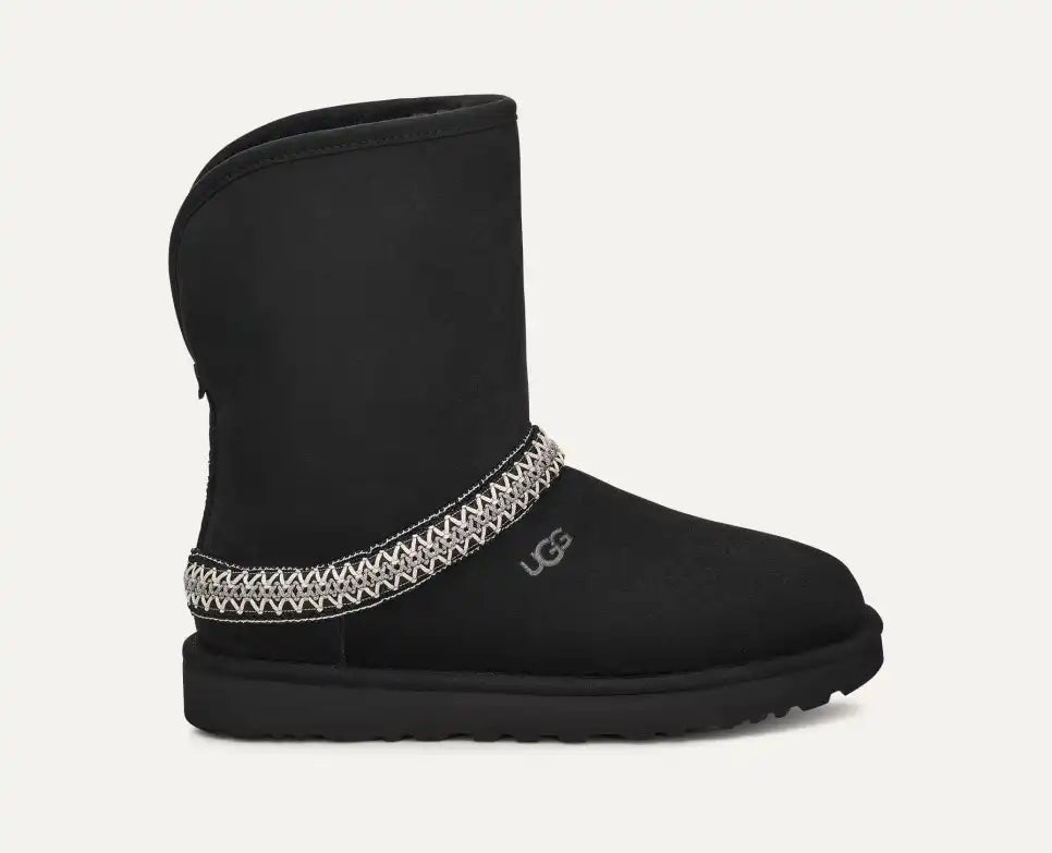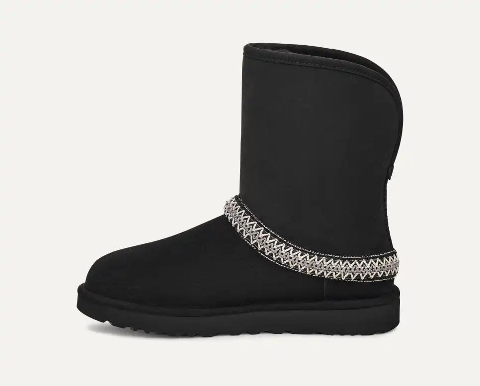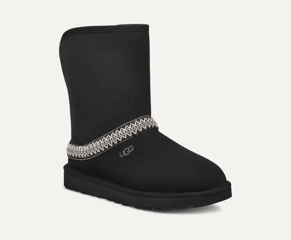 We should warn you, our Classic Short Crescent boots are so cozy-chic, they might replace all of your other boots, shoes, and slippers. Crafted with Twinface sheepskin and lined with UGGplush™, slipping into these is like sinking into an alternate fleece-filled reality. The curved shaft can be folded down while still showing off the exterior UGGbraid™ or worn tall for chillier days. Complete with a lightweight sugarcane EVA outsole and microsuede binding.