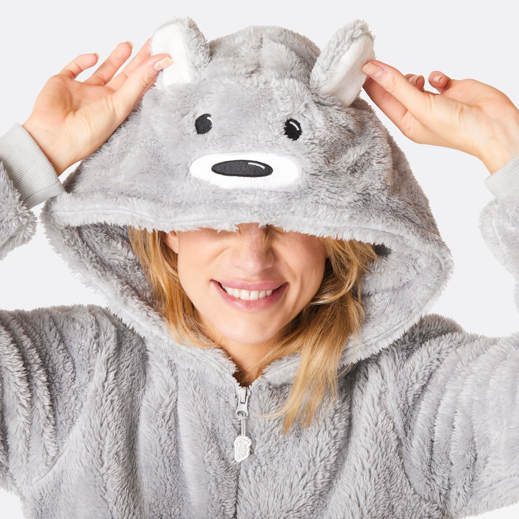 The softest and most comfy onesie you can imagine! The teddy material has the perfect amount of stretch, and wearing it feels like getting a giant hug.
