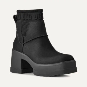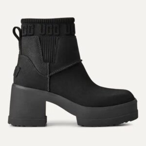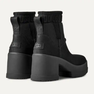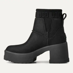 If you love our Brooklyn boot, you’ll adore our Moxy Chelsea. It delivers the features you love about our Brooklyn like the chunky lug sole, Twin Seam details, and The Graphic UGG® Font knit gore, and adds a chic, square toe. The upper is crafted with water-resistant leather and lined with soft microfiber for wear-all-day comfort. Set upon a lightweight rubber outsole that adds 2′ of height at the platform, and 3′ at the heel.