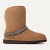 We should warn you, our Classic Short Crescent boots are so cozy-chic, they might replace all of your other boots, shoes, and slippers. Crafted with Twinface sheepskin and lined with UGGplush™, slipping into these is like sinking into an alternate fleece-filled reality. The curved shaft can be folded down while still showing off the exterior UGGbraid™ or worn tall for chillier days. Complete with a lightweight sugarcane EVA outsole and microsuede binding.