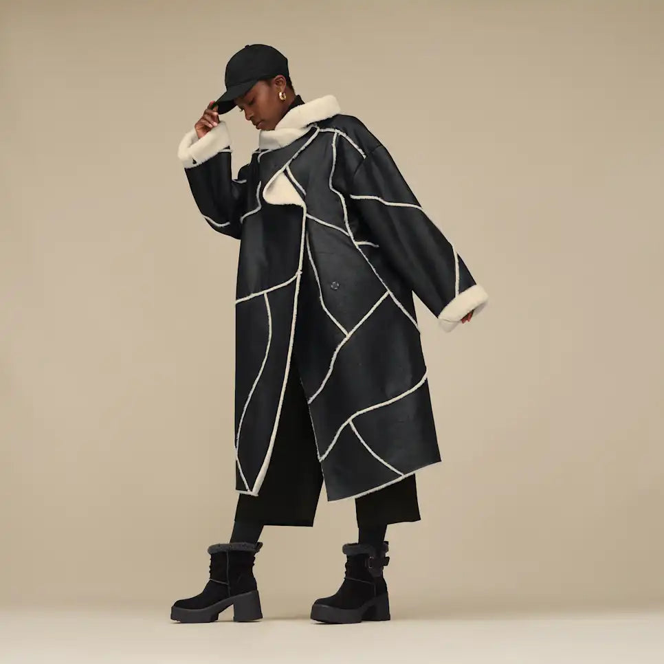 - 10mm curly sheepskin collar, Rear pull tab